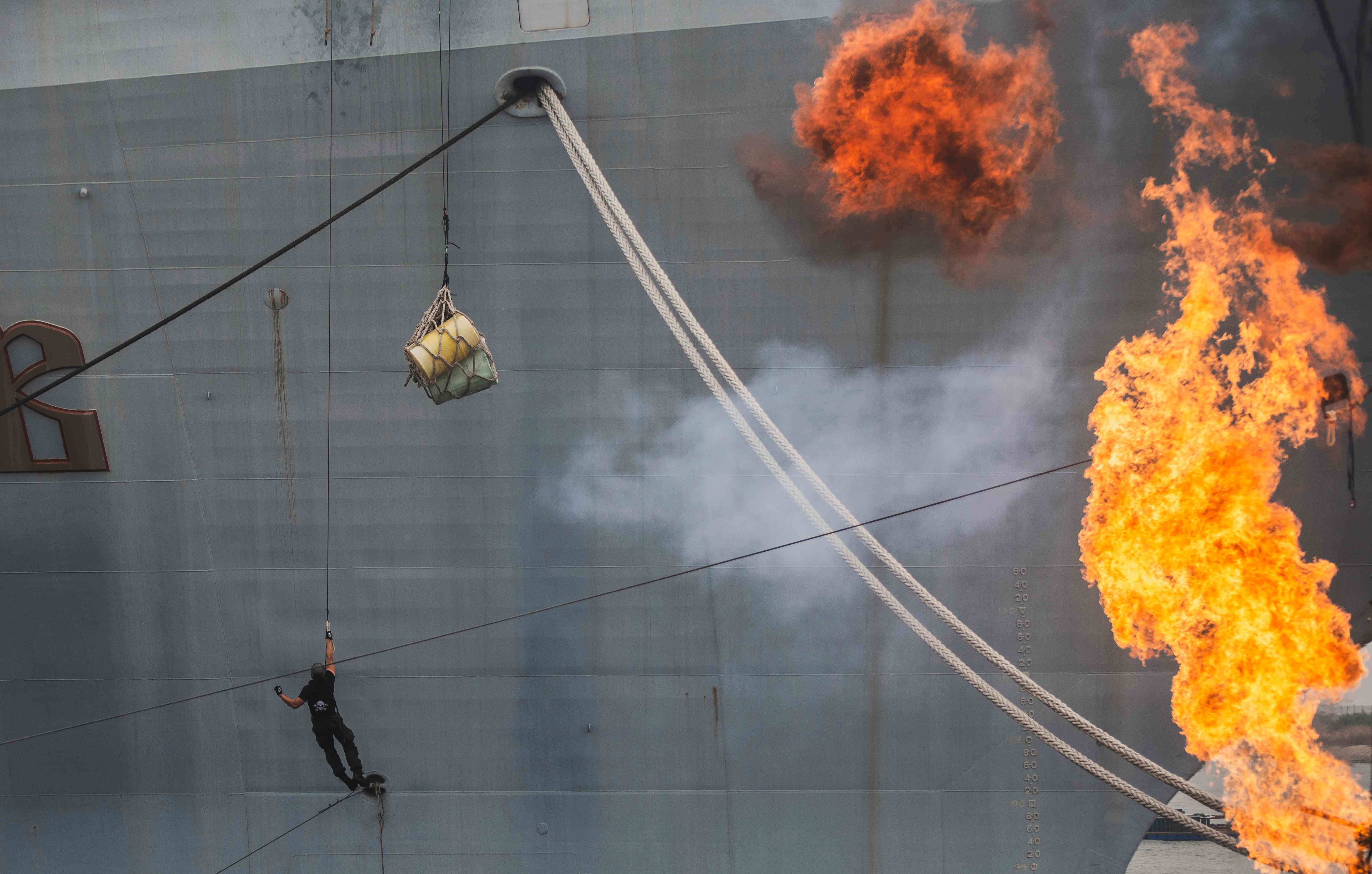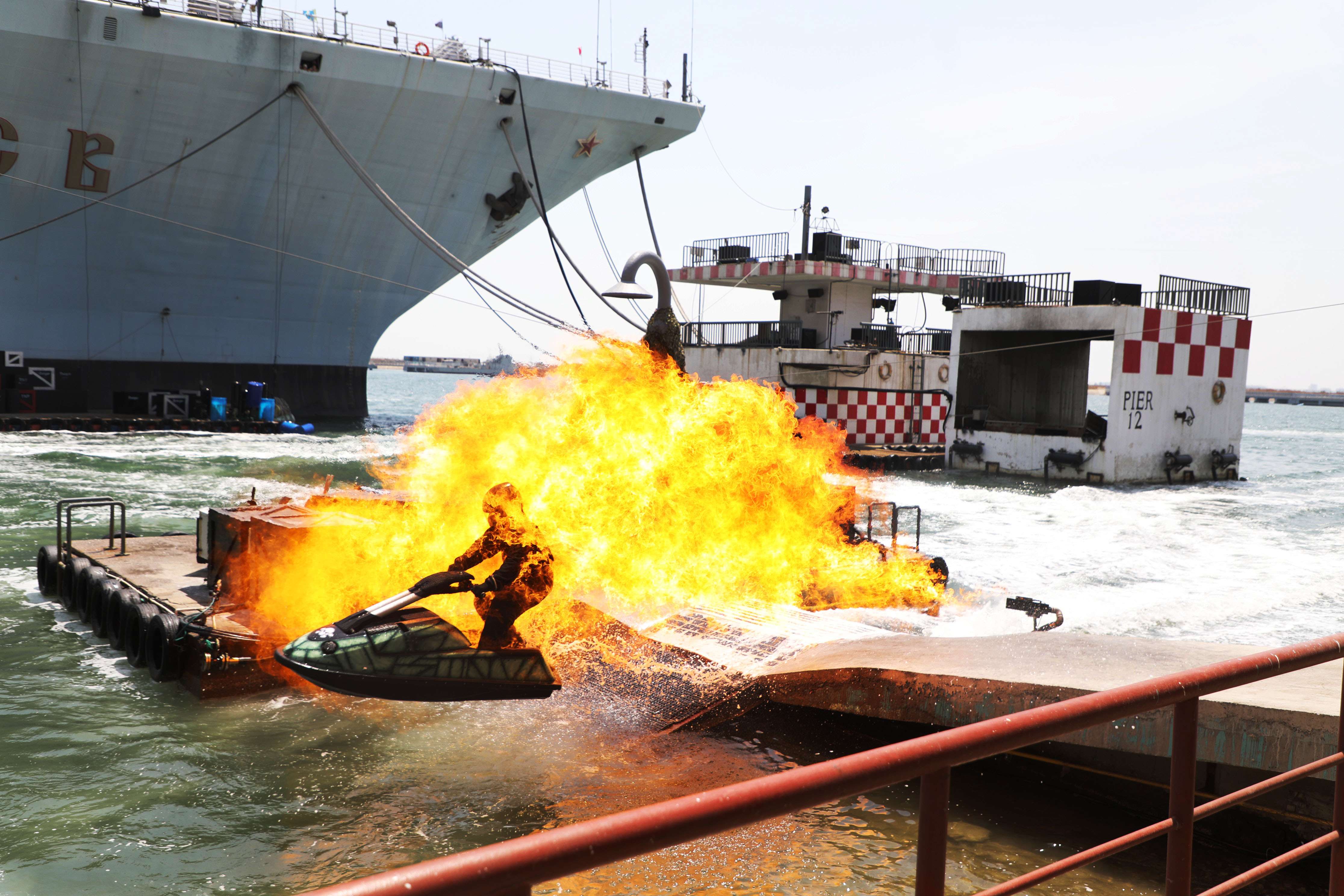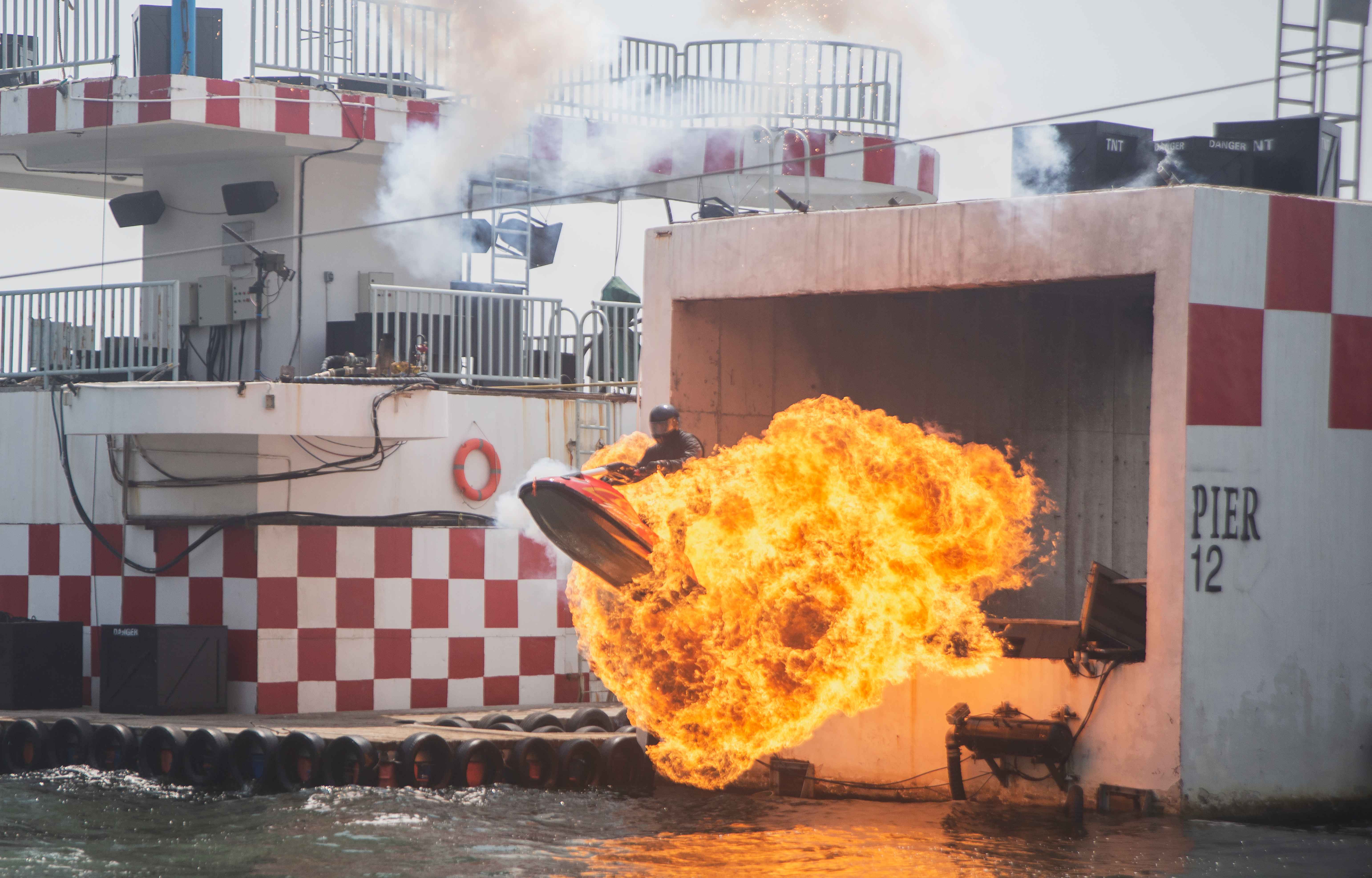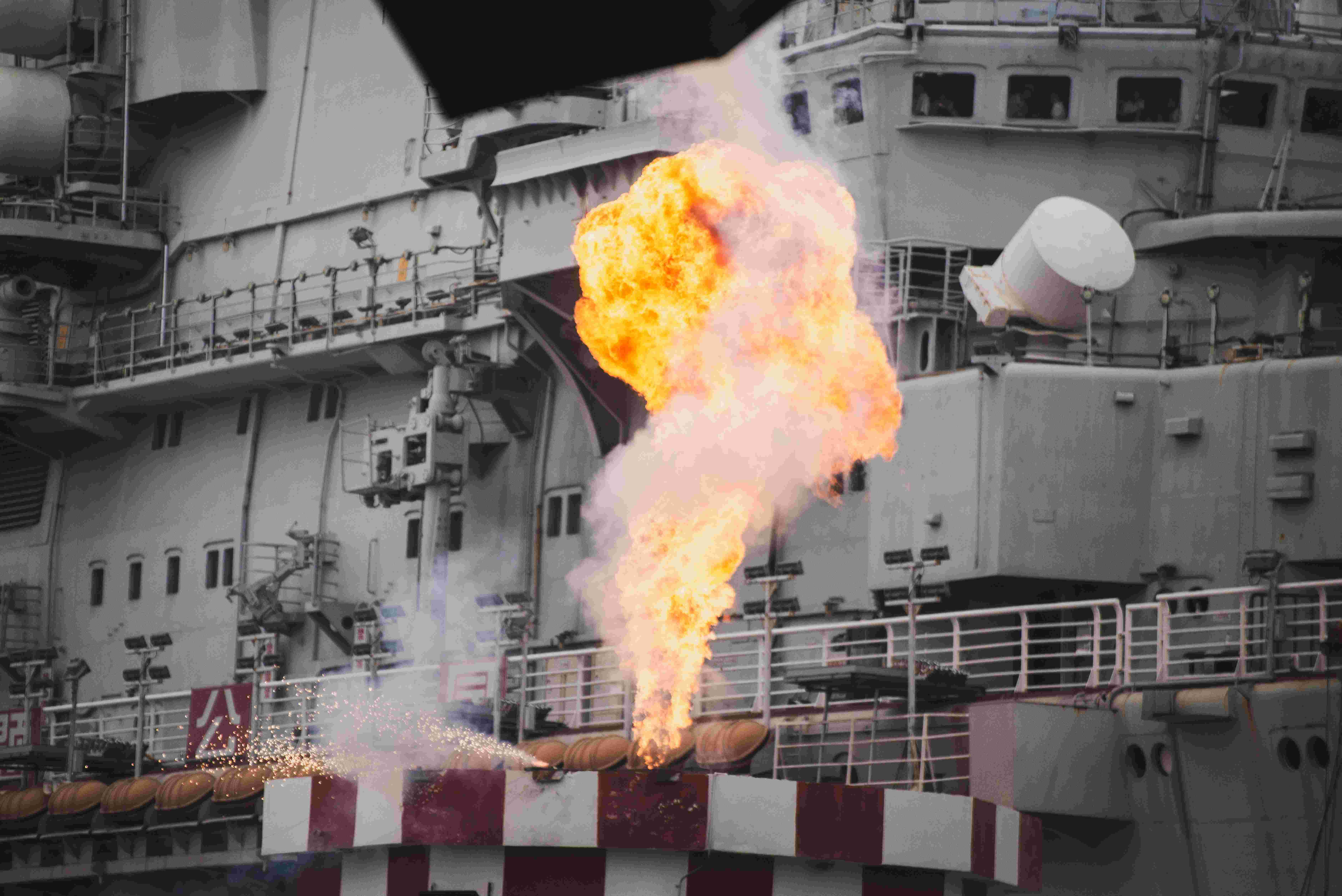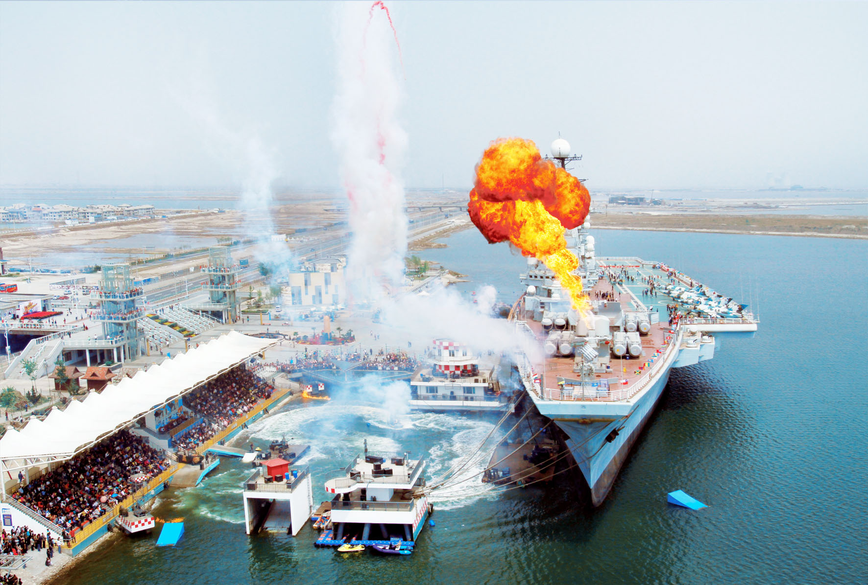 《航母風暴》,是泰達航母打造的世界首部以真實航母為題材的大型實景海戰表演劇。該劇由好萊塢金牌班底制作,全球著名特技演員領銜,恢復并利用航母原有武備系統,整場表演使用跳船、風扇機船、海豚潛水艇、橡皮艇、水上飛行器等先進道具,通過潛水、跳水、滑繩、速降、爆破等特技特效表演,為您震撼呈現現場版“國際大片”。該劇一經推出,即受到游客熱烈追捧,現已成為航母公園的王牌節目。《航母風暴》每年五月至十月上演。