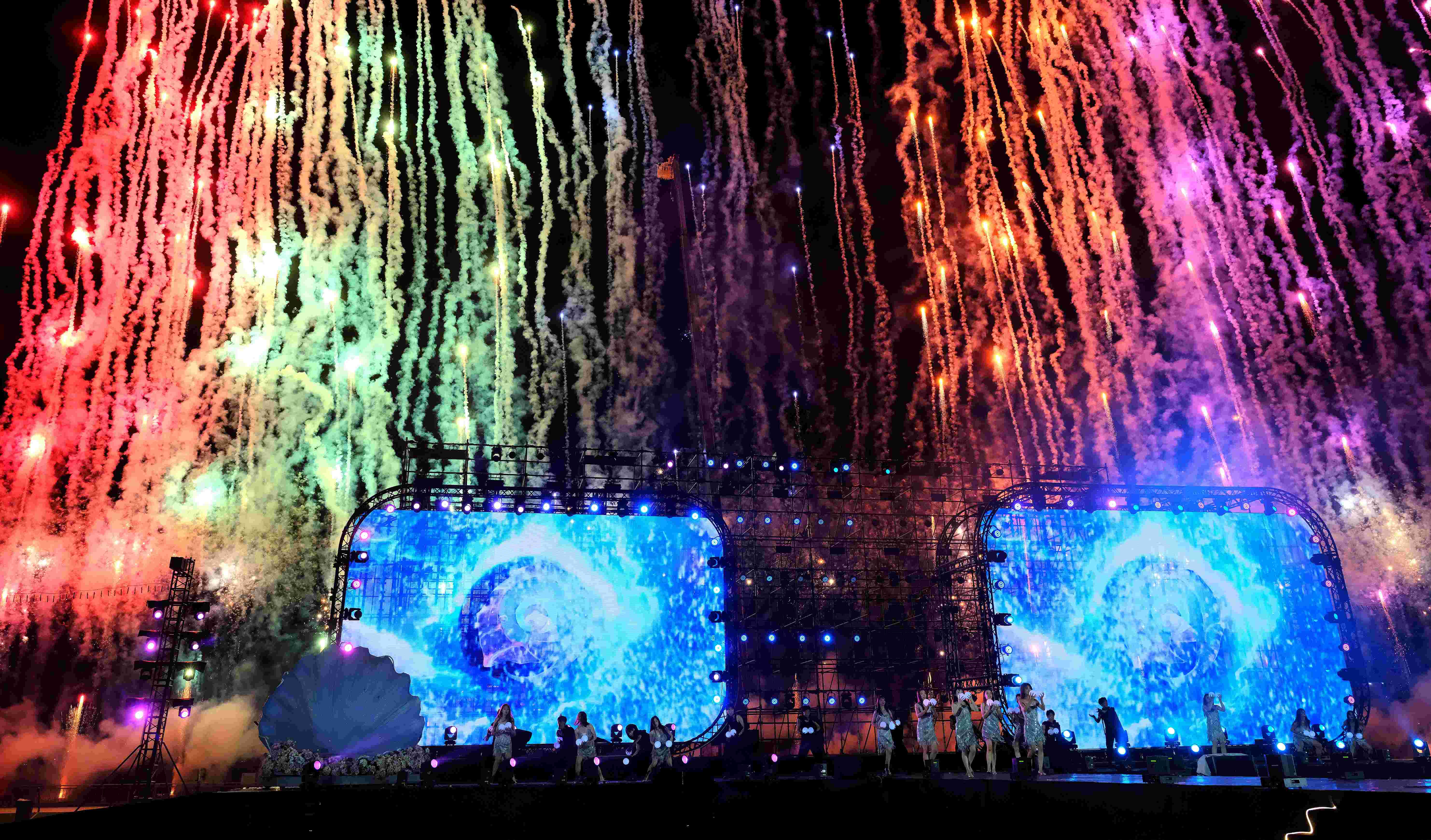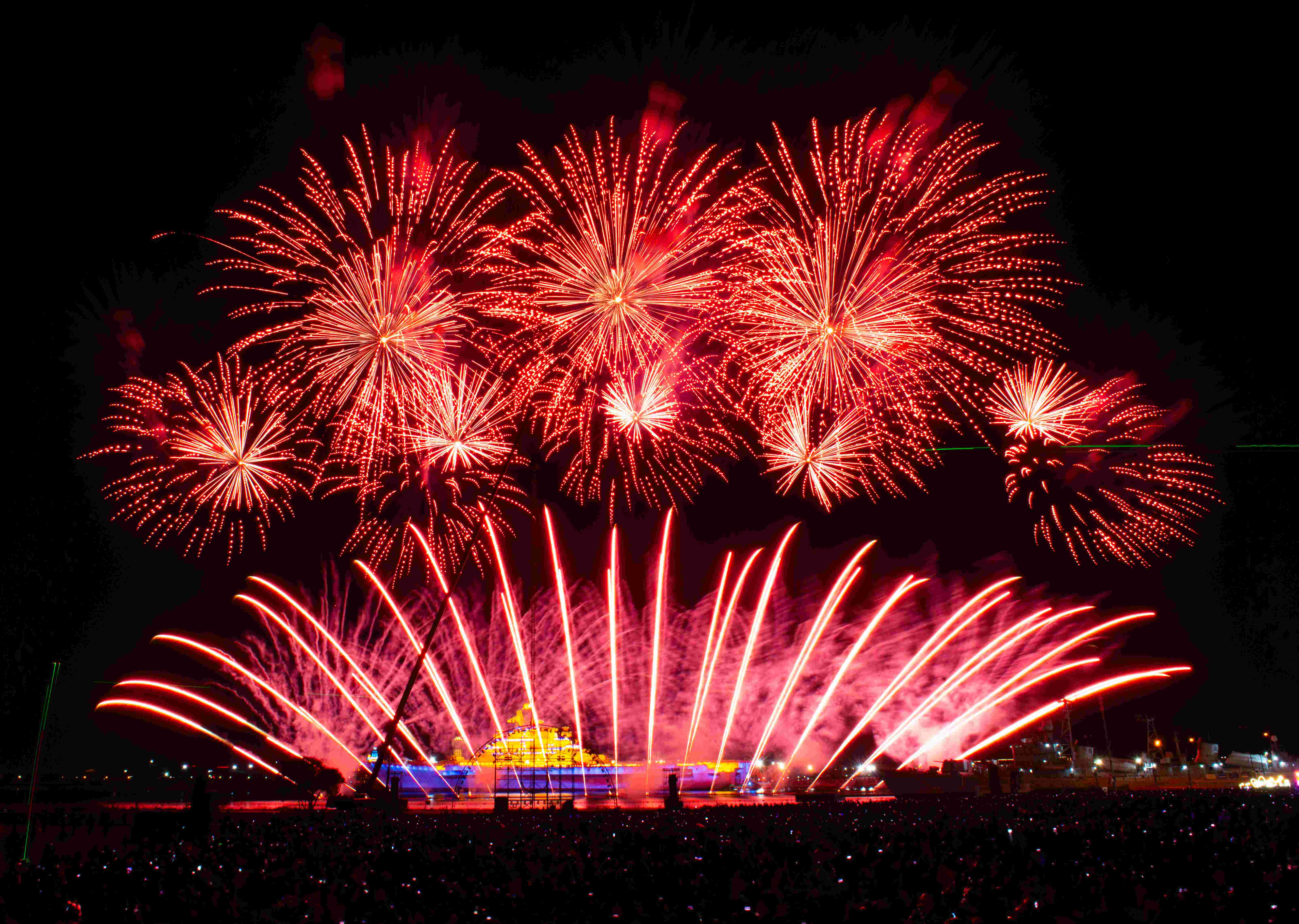 2023以來,泰達航母充分挖掘夜經濟活力,大力探索白+黑旅游模式,創新打造國內首個航母主題深度夜游體驗項目“夜上津門·焰遇航母”夏日焰火音樂節及航母無人機焰火秀,場場萬人歡聚,夜夜燈火輝煌,已成為京津冀頂流夜焰品牌。在這里,一束束焰火如流星劃過夜空,瞬間綻放出萬道光芒,璀璨而神秘,光影交錯中,仿佛被帶入一個美好的夢幻世界……