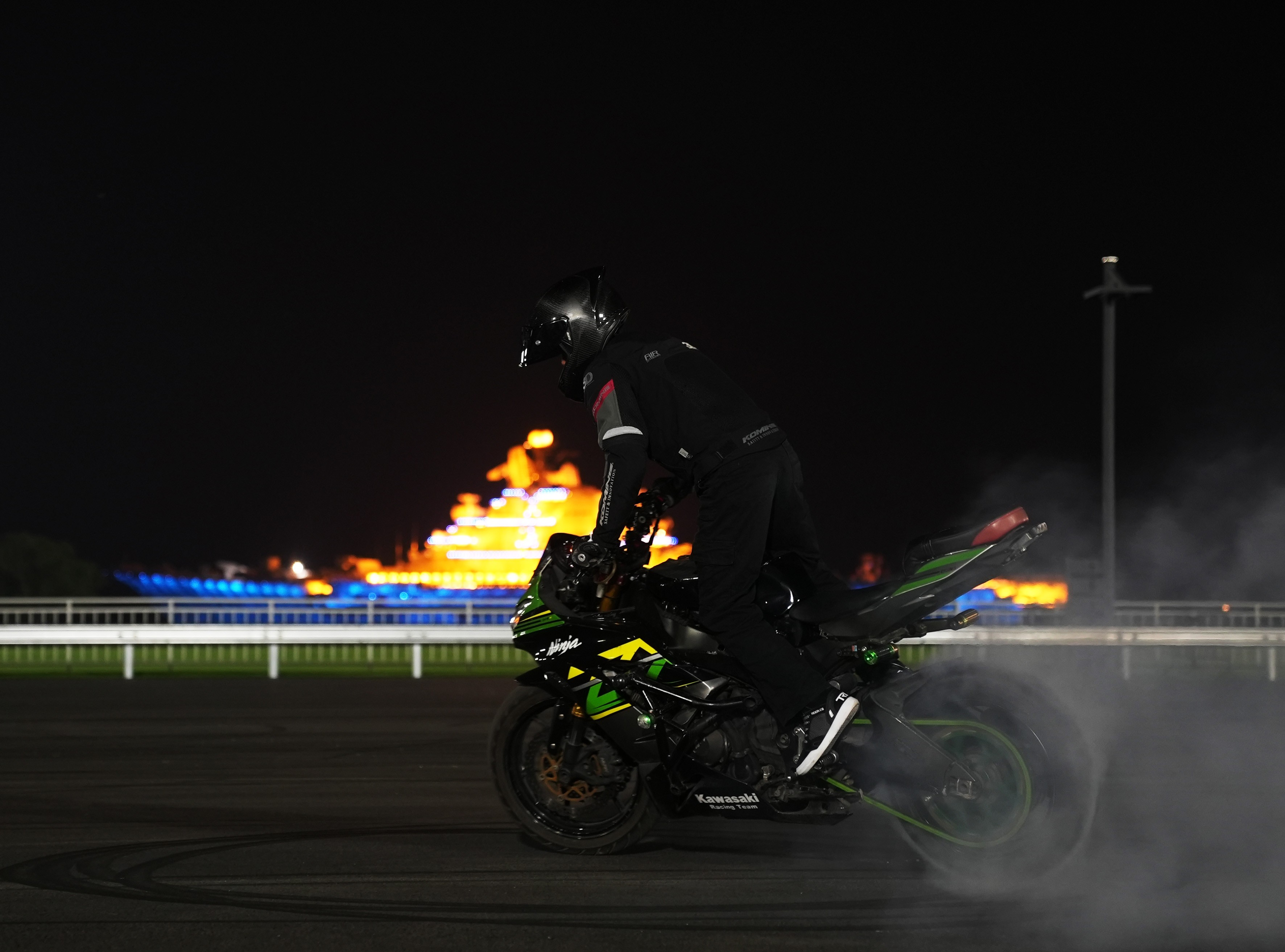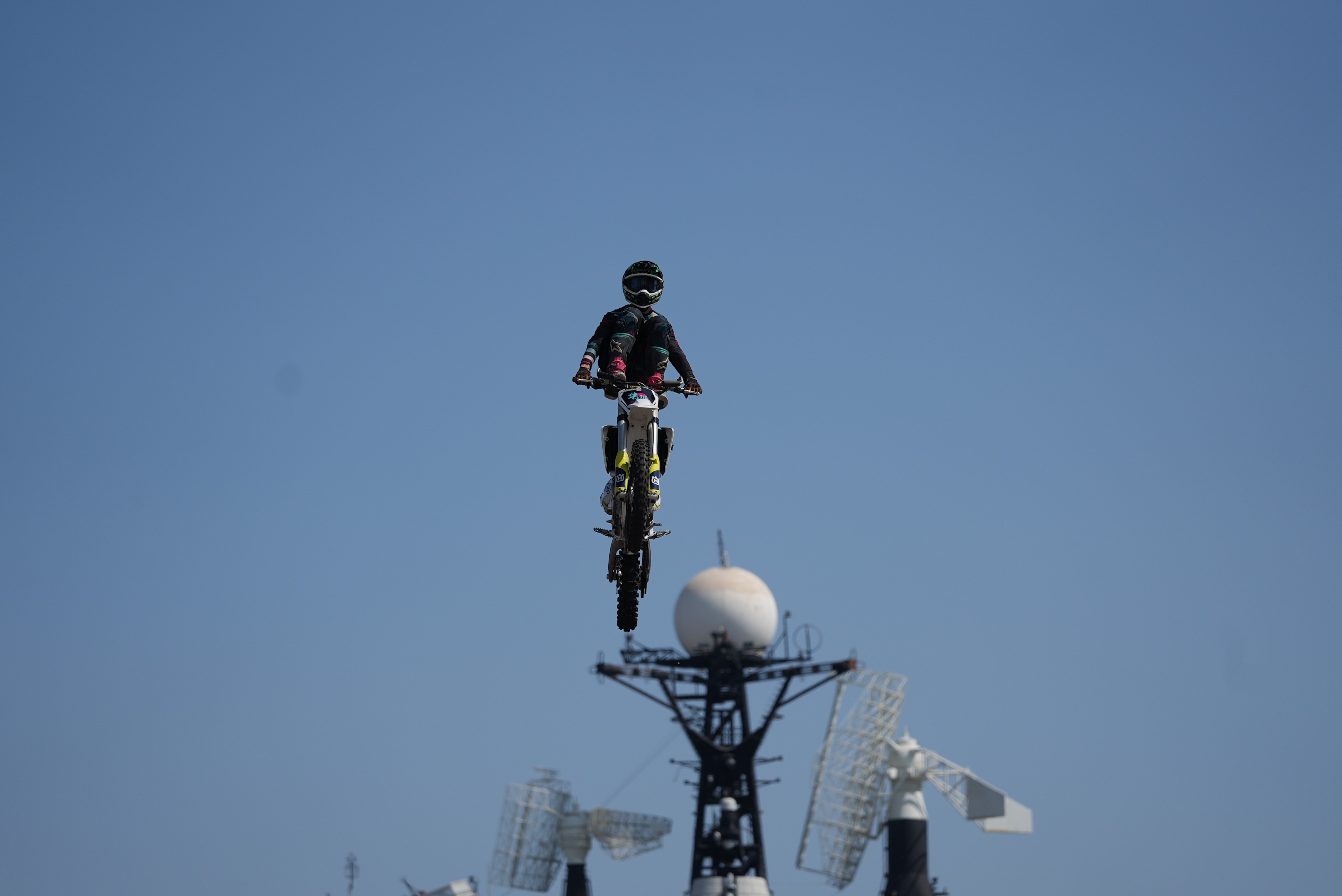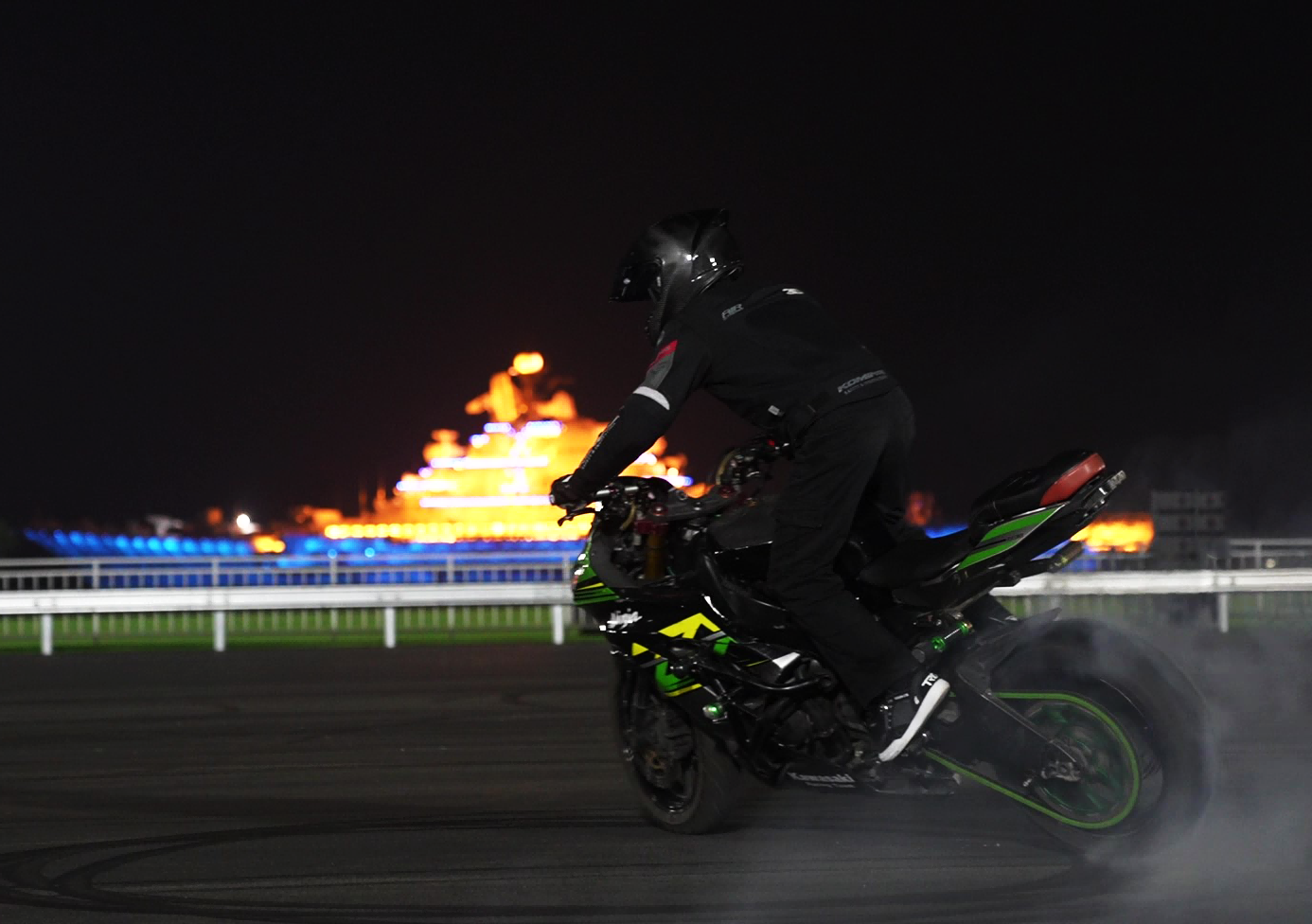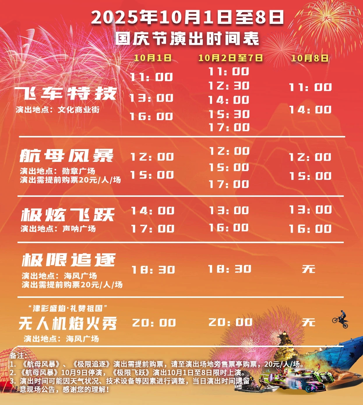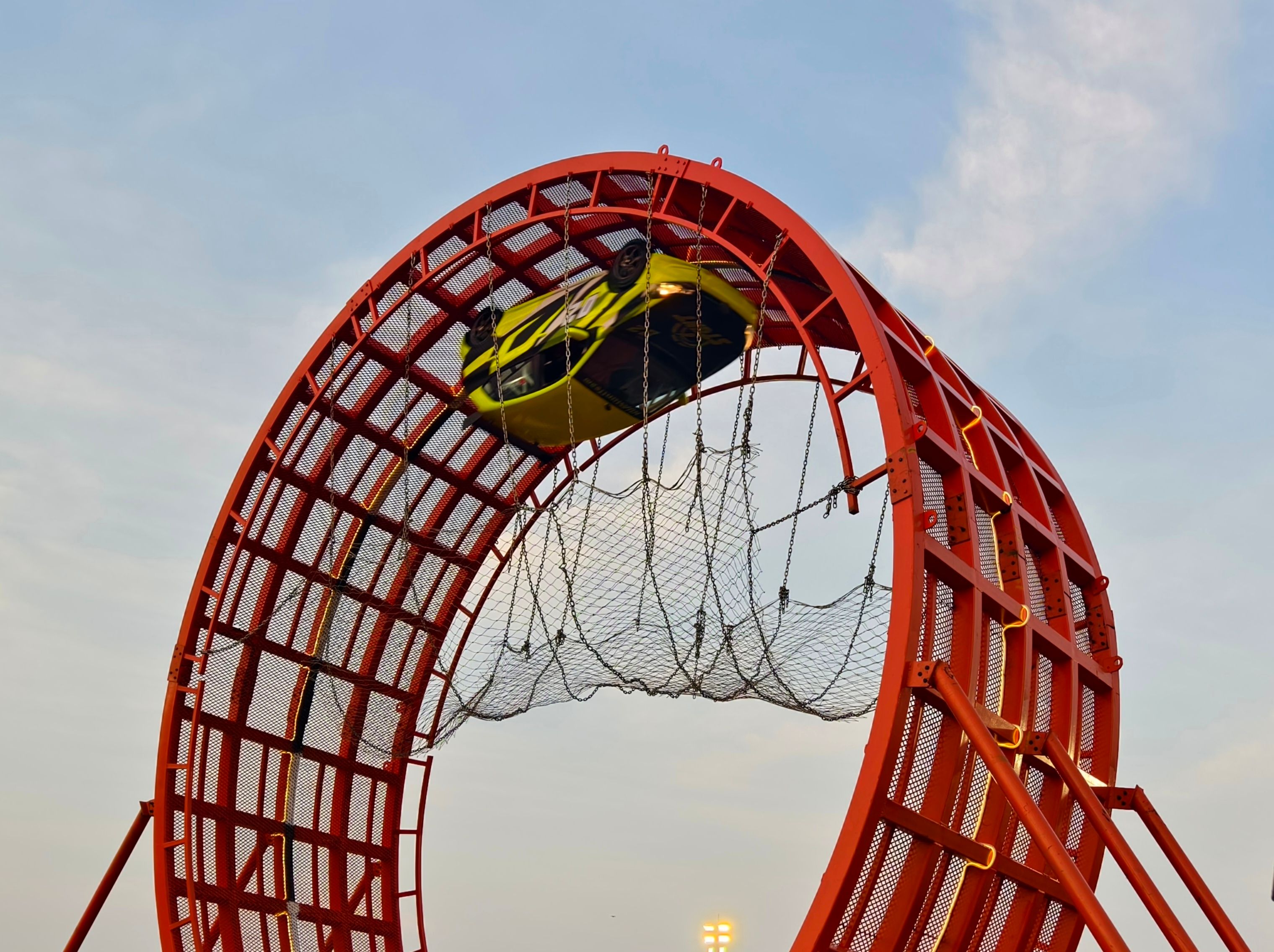 2024年,泰達航母全新打造的《極限追逐》汽摩特技表演在海風廣場超大型飛車表演場燃情啟幕,演出場內近200米的加長跑道設計,為賽車發揮極致性能提供了絕佳舞臺。演出中引入了令人矚目的全國首座12米高的摩天輪大轉環,經過改裝后的賽車將在摩天輪上完成360度旋轉,挑戰人車合一的極限境界,成為該演出最大亮點。此外,演出中更有緊張刺激的雙車追逐、華麗漂移等環節,帶您踏上速度和勇氣的傳奇之旅。