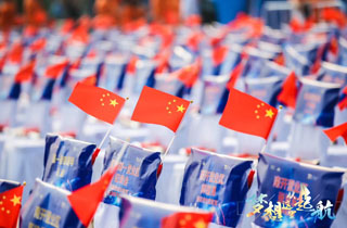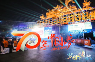 夜間的航母熠熠生輝,時值祖國70周年慶,在場上千人共唱《我和我的祖國》,慶祝祖國70周年華誕,一度掀起陣陣高潮。