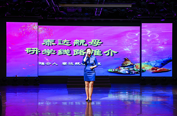 活動中,與會領導為獲獎學生頒發榮譽證書,學生代表現場展示獲獎作品。中國鼓表演、詩朗誦、合唱、武術表演等精彩節目穿插呈現,多維度、立體式宣傳我國航海事業成就和先進人物事跡。表彰展示活動后,由泰達航母研學推介官向活動來賓重點介紹了航母國防軍事科普、素質拓展訓練等精品研學課程。