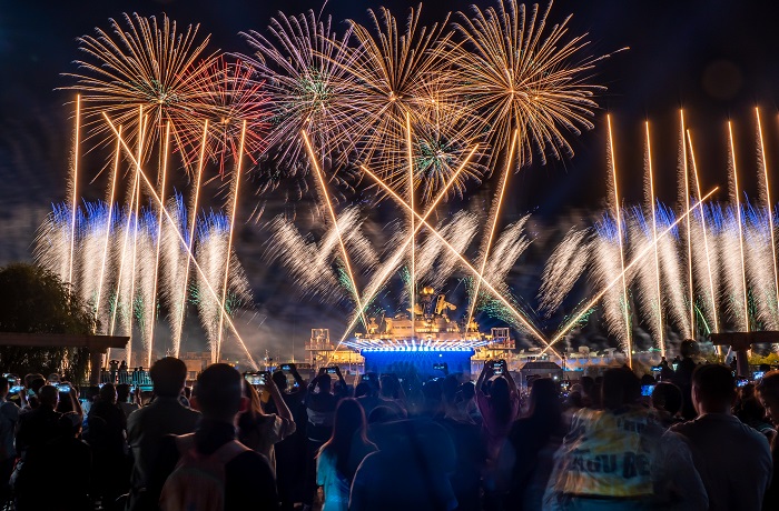 2023年,泰達(dá)航母搶抓文旅復(fù)蘇大勢(shì),深入挖掘航母夜經(jīng)濟(jì)潛力,大力推動(dòng)旅游消費(fèi)提質(zhì)升級(jí),傾心打造了大型沉浸式音樂舞臺(tái)焰火秀項(xiàng)目,開展“夜上津門·焰遇航母”夏日焰火音樂節(jié)活動(dòng),真正開啟航母“白+黑”旅游新模式,促進(jìn)航母游熱度直線攀升,航母抖音官方號(hào)更是多次登頂抖音天津市團(tuán)購(gòu)帶貨總榜第一名、天津景點(diǎn)收藏榜第一名、熱銷榜第一名,“焰遇航母”一躍成為享譽(yù)京津冀地區(qū)優(yōu)質(zhì)焰火秀演出項(xiàng)目。中秋國(guó)慶期間,還升級(jí)打造了“國(guó)慶特別版”大型無人機(jī)焰火秀,再度掀起夜場(chǎng)新高潮。全年19場(chǎng)焰火秀演出共吸引游客22.16萬人次,較疫情前2019年同期增長(zhǎng)28%。