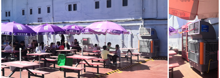 為不斷完善園區服務配套設施,緩解高溫、排隊等待帶來的焦慮情緒,讓游客獲得更好的旅游體驗,暑假期間,泰達航母在安檢排隊區增設遮陽棚,在園區美食街、甲板休憩處增設遮陽傘,還在甲板休息區增設2臺室外冷風機設施,為游客送去夏日清涼,廣受游客好評。