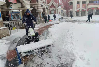 2021年立冬迎來冬季第一場雪,初雪即暴雪,偌大的航母園區(qū)迅速被皚皚白雪覆蓋,給出行的游客帶來極大不便以及安全隱患。根據(jù)氣象預(yù)警,泰達航母提前做好防范準備,加強24小時應(yīng)急值守,隨時開展除雪除冰工作。