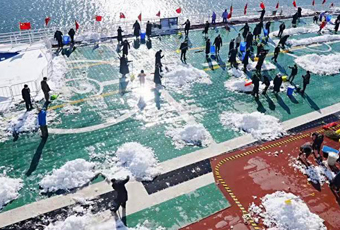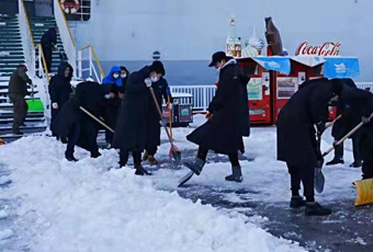 11月7日至9日,由泰達航母黨總支書記、董事長劉占中帶隊,全體領(lǐng)導(dǎo)班子成員參加,各一線、二線部門人員全體出動開展破冰除雪工作。全體干部職工手持除雪工具,不畏嚴寒、鉚足干勁、通力合作,從景區(qū)入口、游客服務(wù)中心、俄羅斯風(fēng)情街、主廣場再到航母艦上、南北島區(qū)域,從清出一條干凈、安全的通道再到全面清除積雪積冰,不遺余力推進清雪工作。經(jīng)過兩天的不懈努力,園內(nèi)內(nèi)主干道及參觀游覽區(qū)域積雪基本清掃完畢,為游客出行安全提供保障。
